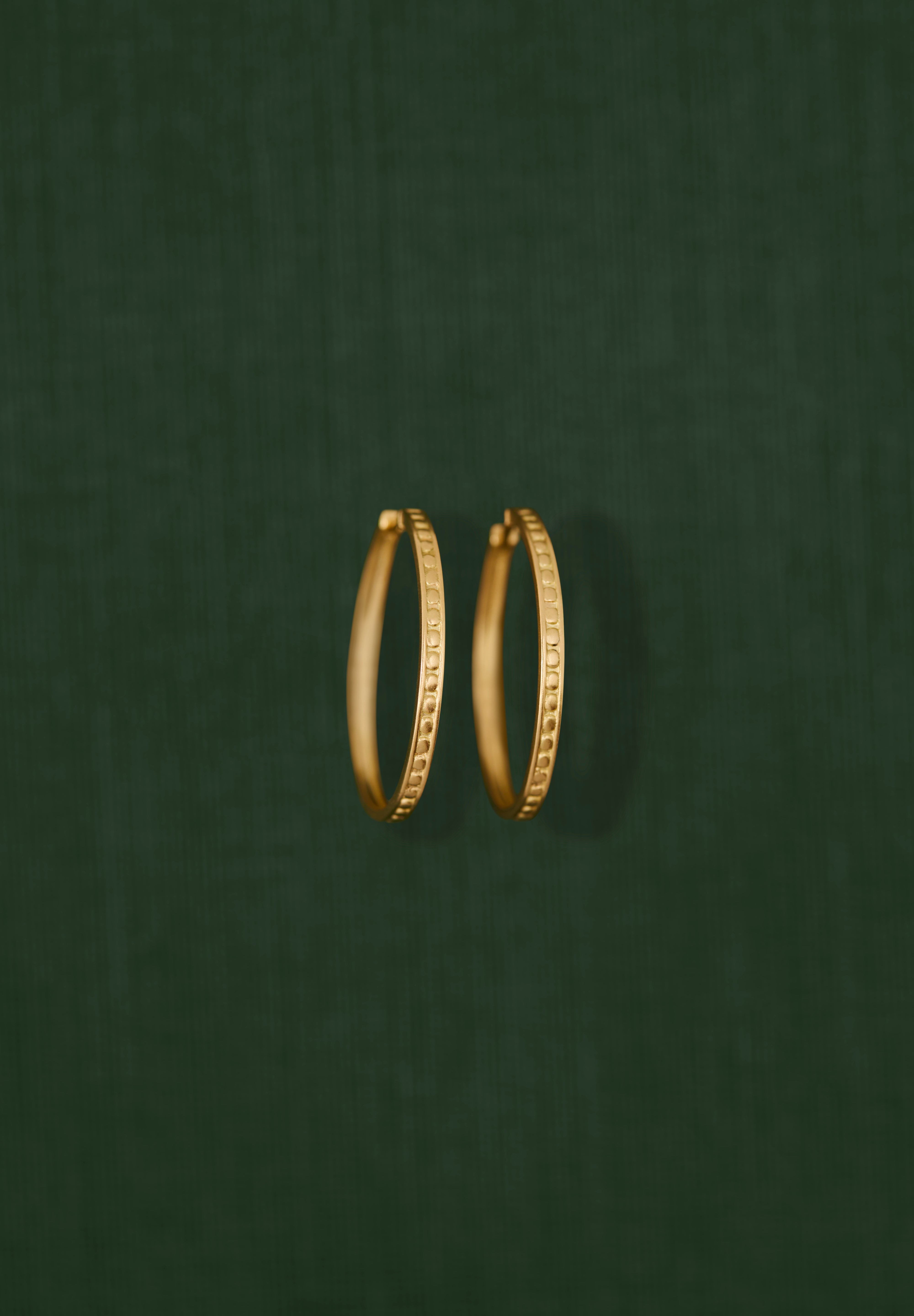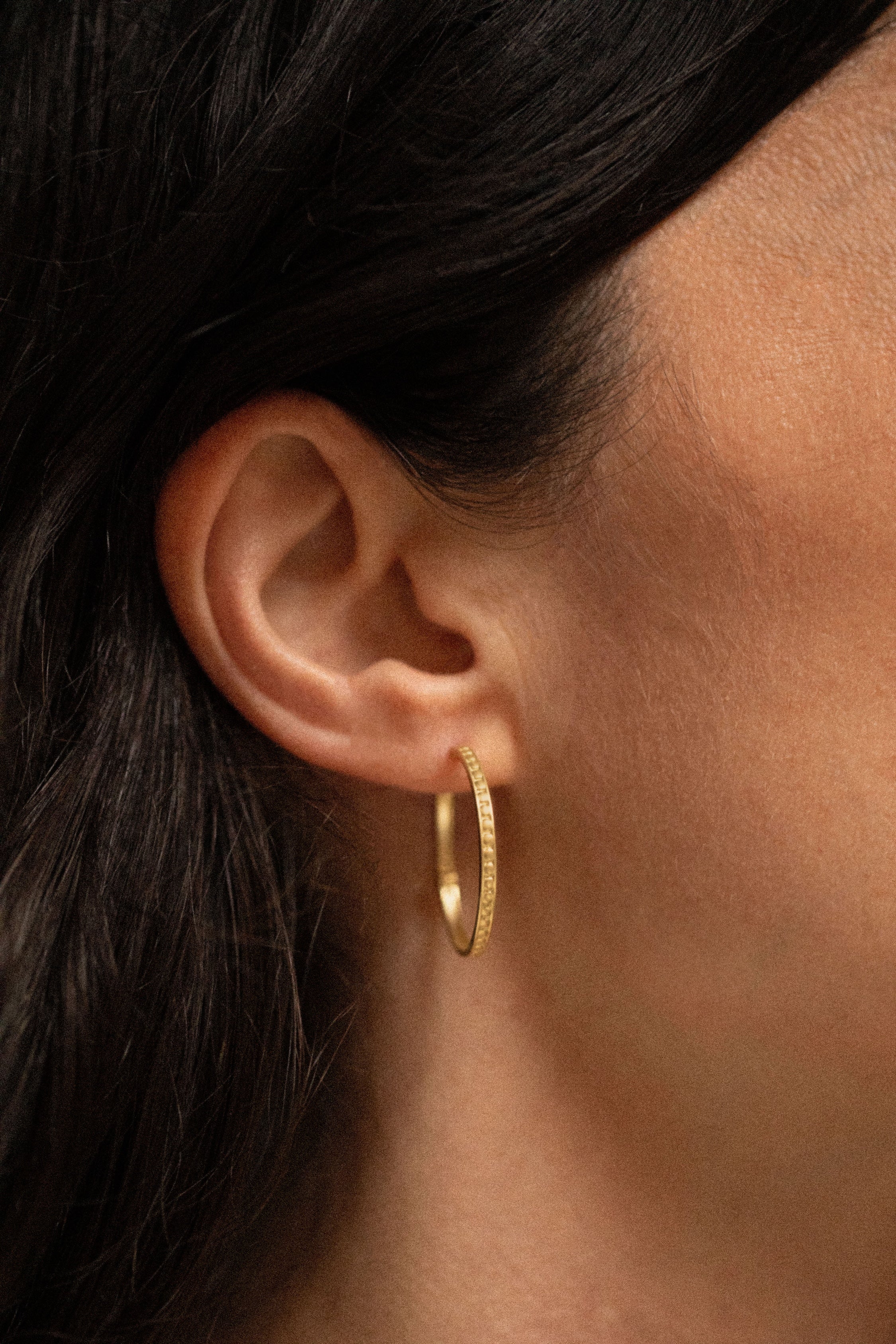 Featuring an organic, hand-textured pattern inspired by the sun’s radiant energy. These earrings make a statement while being perfect for everyday wear.